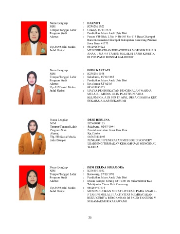 Program Studi : Pendidikan Islam Anak Usia Dini