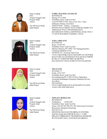 Program Studi : Pendidikan Islam Anak Usia Dini