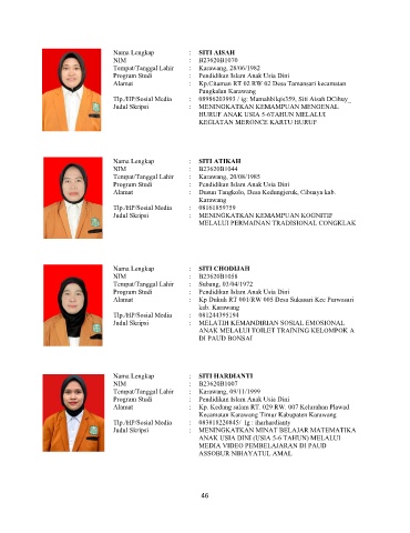 Program Studi : Pendidikan Islam Anak Usia Dini