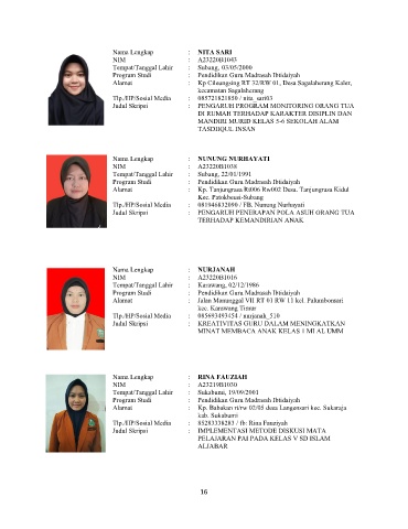 Program Studi : Pendidikan Guru Madrasah Ibtidaiyah