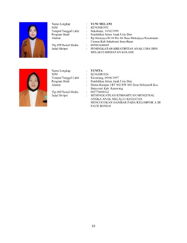 Program Studi : Pendidikan Islam Anak Usia Dini