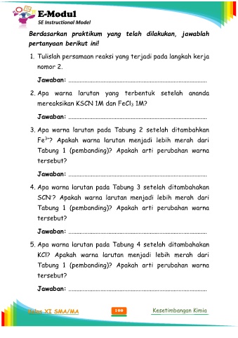 Kelas XI SMA/MA                            100                Kesetimbangan Kimia