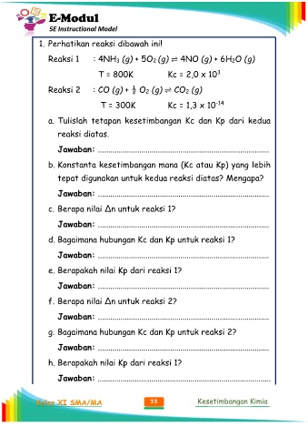 Kelas XI SMA/MA                             75                Kesetimbangan Kimia