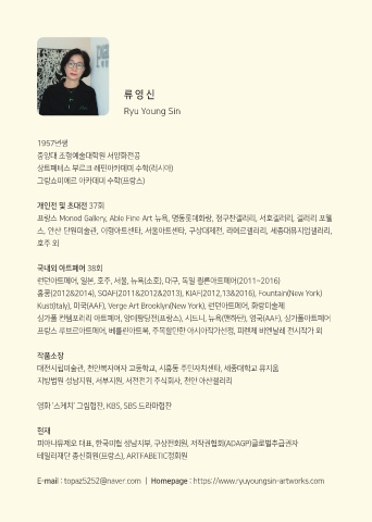 E-mail : topaz5252@naver.com ㅣ Homepage : https://www.ryuyoungsin-artworks.com