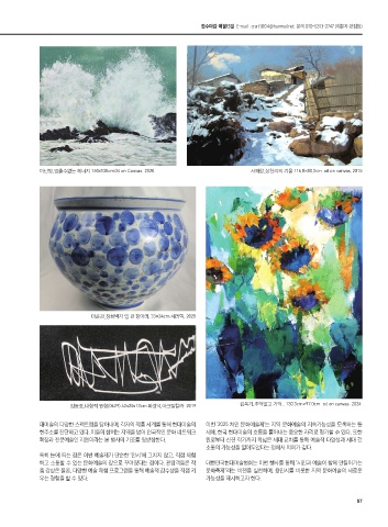 이난영_멈출수없는 에너지 160x130cmOil on Canvas 2020 서해창_상천리의 겨울 116.8×80.3cm. oil on canvas, 2015