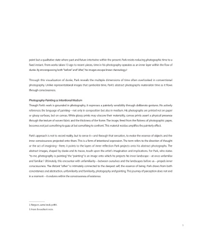 photography. Unlike representational images that symbolize time, Park’s abstract photographs materialize time as it flows