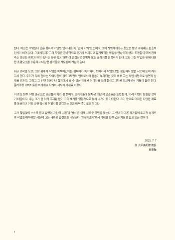 기 때문이다. 나는 그가 한 치의 주저함 없이 그의 세계를 열정적으로 펼쳐 나가기를 기대한다. 그가 앞으로 어떠한 다양한 재료