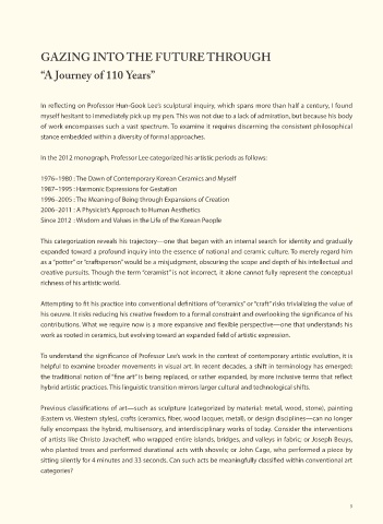In the 2012 monograph, Professor Lee categorized his artistic periods as follows: