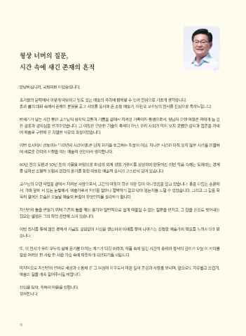 또, 이 전시가 우리 모두의 삶에 온기를 더하는 계기가 되길 바라며, 작품 속에 담긴 시간의 층위와 정서의 깊이가 오늘 이 자리를