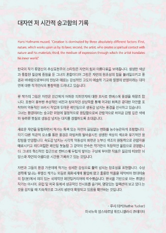 매료시키고 리드미컬한 페인팅 붓놀림 그 강약의 연속은 작가만의 독창적인 울림으로 공명합니