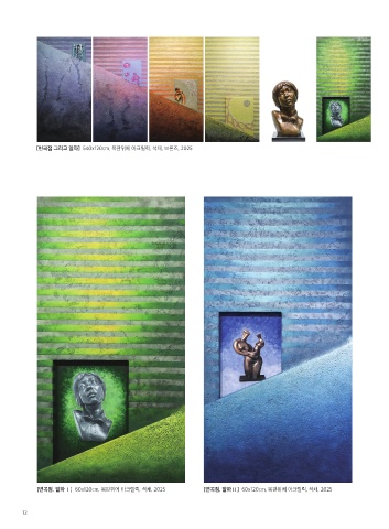 [변곡점 그리고 알파] 540x120cm, 목판위에 아크릴릭, 석채, 브론즈, 2025 [변곡점, 알파Ⅰ] 60x120cm, 목판위에 아크릴릭, 석채, 2025 [변곡점, 알파Ⅱ] 60x120cm, 목판위에 아크릴릭, 석채, 2025 12