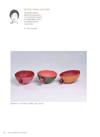 홍 귀 화 | HONG GUEI HWA 전국한지대전 초대작가 대한민국 한지대전 초대작가 전국 안동 한지대전 초대작가 전국 전통공예대전 초대작가 한국공예대전 추천작가 지승공예 명인 M : 010-5593-8246 담다(2025) 17.7×15.0×8.0㎝ 전통한지, 생칠, 색칠자개 98 제56회 한국미술협회 원주지부 회원전