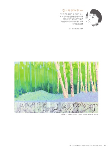 김 시 하 | KIM SI HA 개인전 7회, 초대전 및 단체전 다수 2025 원주미술은행 출품-원주시청 2025 원주미협전, 강원미협전 미술협회/원주수채화작가회 회원 시하쌤그림공방 M : 010-8783-7317 산다는 것 25-Ⅷ 73.0×117.0cm Mixed media on papaer The 56th Exhibition of Wonju Korean Fine Arts Association 29