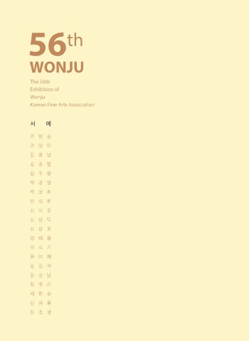56 th WONJU The 56th Exhibition of Wonju Korean Fine Arts Association 서 예 권병순 권영미 김광남 김종범 김주완 박광양 박문희 변성희 심의준 심상덕 심상윤 양태용 유석기 윤미혜 임길자 임순남 정주리 채희승 천금용 최조생 62 제56회 한국미술협회 원주지부 회원전