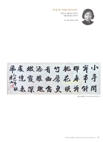 박 문 희 | PARK MUN HEE 대한민국 미술대전 초대작가 강원미술대전 초대작가 M : 010-3090-2560 봄의 흥겨움 27.0×70.0cm 화선지, 먹 The 56th Exhibition of Wonju Korean Fine Arts Association 69