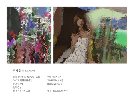 박 세 창 P. S. CHANG 00미술대학 조각과 입학 - 중퇴 현대 기아자동차 00대학 경영학과 졸업 기아테크노 부사장 현대 중공업 00중공업 부회장 현대 건설 현대 제철-하이스코 현재 : 포스트 모던 작가