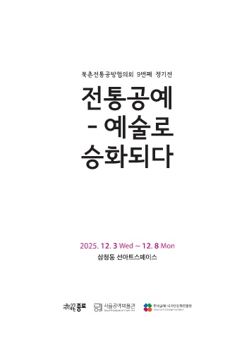 북촌전통공방협의회 9번째 정기전 전통공예 -예술로 승화되다 2025. 12. 3 Wed ~ 12. 8 Mon 삼청동 선아트스페이스