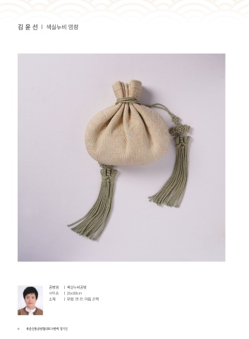 김윤선 l 색실누비 염랑 김정순 l 초서(草書) 공방명 ㅣ 색실누비공방 공방명 ㅣ 종이나무갤러리 사이즈 ㅣ 25x30cm 사이즈 ㅣ 40x18x60cm 소재 ㅣ 무명, 면 끈, 매듭 끈목 소재 ㅣ 한지, 동 작품설명 ㅣ 풀의 결과 빛의 흐름을 시각적 문장처럼 표현한 작품이다. 비정형의 선들은 빠르게 흘린 글씨처럼 겹치고 흩어지며, 조명은 그 사이를 스며들어 자연의 호흡과 여운을 드러낸다. 6 북촌전통공방협의회 9번쩨 정기전 7