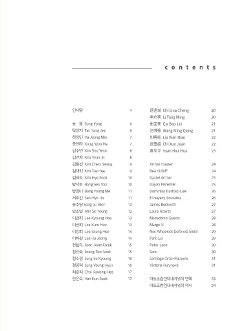 인사말                       4        迟连城  Chi Lina Cheng        20