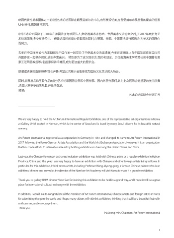 In addition, I would like to congratulate all the members of Art Forum International, Chinese artists, and foreign artists in Korea