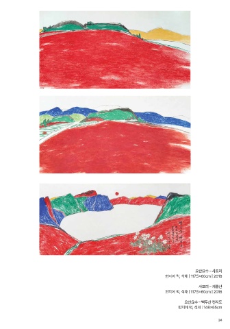 요산요수 – 사포리 한지에 먹, 석채 | 117.5×60cm | 2016 사포리 – 계룡산 한지에 먹, 석채 | 117.5×60cm | 2016 요산요수 – 백두산 천지도 한지에 먹, 석채 | 148×65cm 24