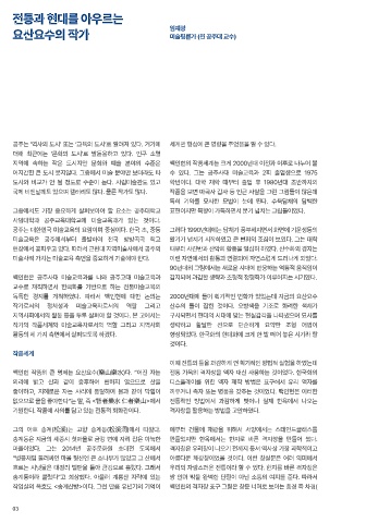 더해  최근에는  ‘문화의  도시’로  발돋움하고  있다.  인구  소멸                                                                                                 뜻이다. 한옥에서 창을 창으로 보지 않고 풍경을 담을 수 있는                교육방법은 전통미술교육의 확장에 활용할 가치가 있으며 더욱