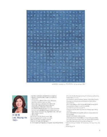 Lee, Myung-Ae        2024 francisgallery/LA(11. 22. 2024 - 2..1. 2025),     DASEIN·BEZIEHUNG·HARMONIE forum Galerie/Wiesbaden(2005),