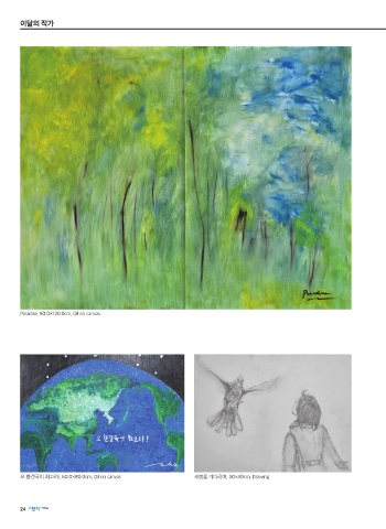 이달의 작가 Paradise, 90.0×120.0cm, Oil on canvas 오 환건국이 최고라!, 60.0×80.0cm, Oil on canvas 새봄을 기다리며, 30×40cm, Drawing 24 24