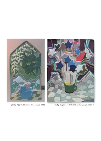 싱그러운 마음 35x60x3(h)cm Wood, acrylic 2024 Starligt Eruption 49x64.5x3(h)cm Wood, acrylic 2024-25