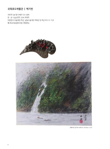 귀족호도박물관 ㅣ 박기빈 개인전 5회 및 단체전 다수 참여 한 · 중 미술교류전, 중국 초대전 대한민국 미술대전 특선, 남농미술대전 특별상 및 특선 외 다수 수상 現 목포미술협회 회원, 정헌화실 고향의 꿈 한지에 수묵담채 60x55cm 2023 8