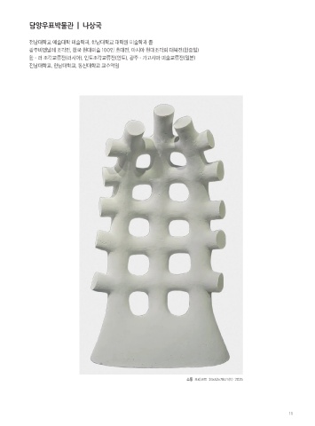 담양우표박물관 ㅣ 나상국 전남대학교 예술대학 미술학과, 한남대학교 대학원 미술학과 졸 광주비엔날레 조각전, 한국 현대미술 100인 초대전, 아시아 현대조각회 대북전(한중일) 한 · 러 조각교류전(러시아), 인도조각교류전(인도), 광주 · 가고시마 미술교류전(일본) 전남대학교, 한남대학교, 동신대학교 교수역임 소통 포리코트 24x52x78cm(h) 2025 11