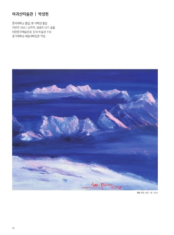 여귀산미술관 ㅣ 박성현 홍익대학교 졸업, 동 대학원 졸업 개인전 26회 / 신작전, 회원전 다수 출품 대한민국예술인상, 한국 예술상 수상 경기대학교 예술대학원장 역임 백두 천지 유채 12F 2016 18
