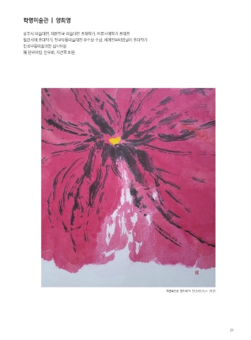 학명미술관 ㅣ 양희영 광주시 미술대전, 대한민국 미술대전 초대작가, 여류서예작가 초대전 월간서예 초대작가, 전국무등미술대전 우수상 수상, 세계전북비엔날레 초대작가 전국무등미술대전 심사위원 現 한국미협, 연우회, 지선묵 회원 자연속으로 한지에 먹 53.5x59.5cm 2025 23