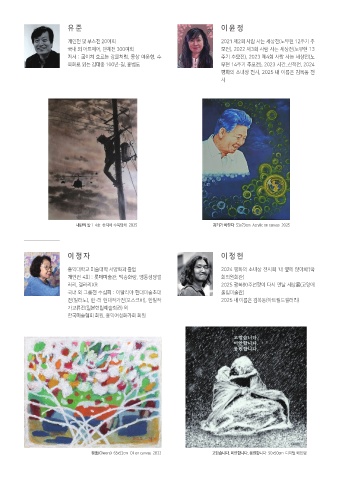 저서 : 굽이쳐 흐르는 강물처럼, 몽상 여운형, 수 주기 추모전), 2023 제4회 사람 사는 세상전(노
