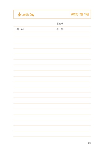 Lord's Day 2026년 2월 15일 설교자 : 제 목 : 성 경 : 133