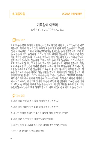 1. 죄의 종과 순종의 종은 각각 어디에 이릅니까?(16)