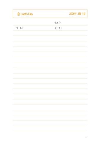 Lord's Day 2026년 2월 1일 설교자 : 제 목 : 성 경 : 97