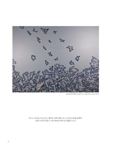 Untitled (225-J10B) 112x162x2cm molten Hanji & Mixed Media 던지고, 기다리고, 다시 고르고, 채색하는 반복 속에서 나는 나 자신의 내면을 탐색한다. 감정은 사라지지 않는다. 다만 형태를 바꾸어 다른 물질로 남는다. 16