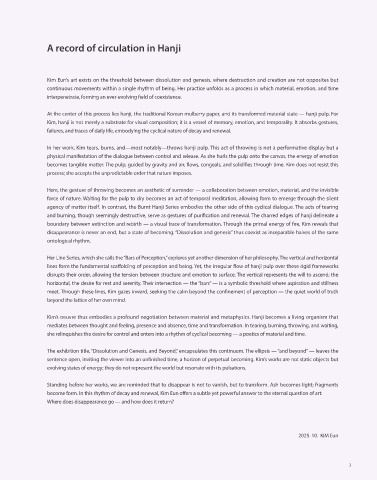 agency of matter itself. In contrast, the Burnt Hanji Series embodies the other side of this cyclical dialogue. The acts of tearing