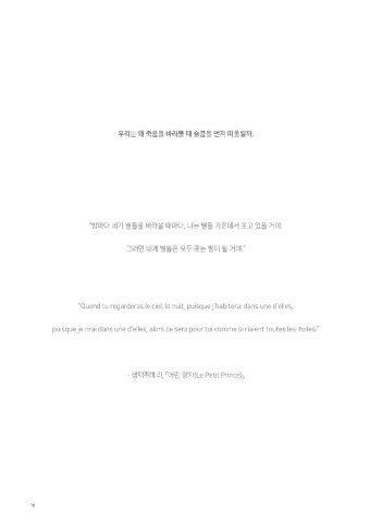 “밤마다 네가 별들을 바라볼 때마다, 나는 별들 가운데서 웃고 있을 거야.