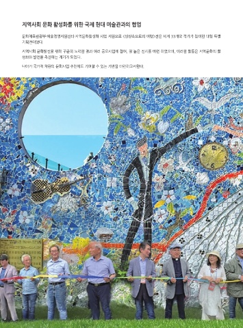 지역사회 문화 활성화를 위한 국제 현대 미술관과의 협업 문화체육관광부·예술경영지원센터·지역문화활성화 사업 지원으로 <상상속으로의 여행>전은 세계 33개국 작가가 참여한 대형 특별 기획전이였다. 지역사회 문화발전을 위해 꾸준히 노력한 결과 여러 공모사업에 참여, 질 높은 전시를 마련 하였으며, 이러한 활동은 지역문화의 활 성화와 발전을 촉진하는 계기가 되었다. 나아가 국가적 차원의 문화사업 추진에도 기여할 수 있는 기반을 마련하고자한다. 112