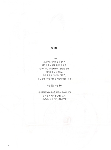 삶 life 70년대 거리마다. 애환의 포장마차는 해저음 일몰 빛을 리어카에 싣고 멍게ㆍ막걸리ㆍ참새구이ㆍ곱창을 담아 서민의 휴식 공간으로 퇴근 길 지친 가장의 쉼터였고, 절친 만나 하소연 나누는 애환의 공간이었네 지붕 없는 포장마차 인정이 교류되는 훈훈한 마음이 지붕이 되고 삶의 깊이 서로 공감하는 것이 서민의 마음을 덮는 지붕이었네 26