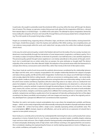 She is considered a leading artist representing the Korean art world, meeting expectations in terms of diligence, pas-