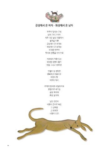 금성에서 온 여자ㆍ화성에서 온 남자 우주의 빛나는 구성 남자 그리고 여자 서로 다른 낯선 마을에서 필연을 이룬 금성에서 온 여자와 화성에서 온 남자는 세대를 바꾸며 역사와 전통을 이어가네 차세대의 맥을 잇는 위대한 생명의 활기 아담 그리고 이브야! 안젤리 성 정원은 행복하고 아름다운 아담의 땅 이브의 대지 추억의 빛바랜 세월조차도 영원으로 새기는 금성 여자야 화성 남자야 낯선 인연이 사랑의 끈으로 묶인 그 신비한 그 위대한 사랑의 인연 86