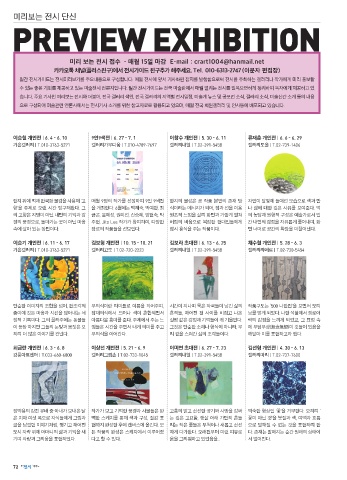 으로 구성되어 미술관련 언론사에서는 전시기사 소개를 위한 참고자료로 활용되고 있으며, 매월 전국 회원갤러리 및 인사동에 배포되고 있습니다.