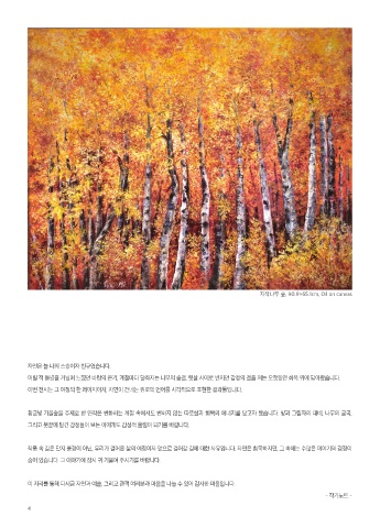 어릴 적 들녘을 거닐며 느꼈던 바람의 온기, 계절마다 달라지는 나무의 숨결, 햇살 사이로 번지던 감정의 결을 저는 오랫동안 화폭 위에 담아왔습니다.