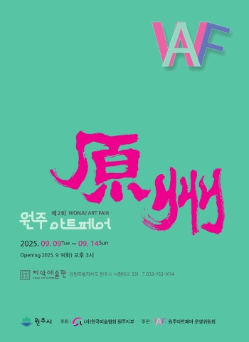 제2회 WONJU ART FAIR 2025. 09. 09 Tue ~ 09. 14 Sun Opening 2025. 9. 9(화) 오후 3시 강원특별자치도 원주시 서원대로 331 T.033-763-9114 주최 : (사)한국미술협회 원주지부 주관 : 원주아트페어 운영위원회