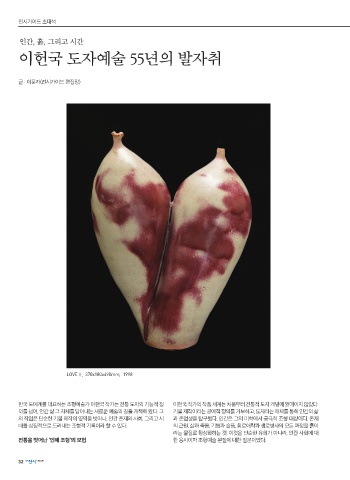 의를 넘어, 인간 삶 그 자체를 담아내는 새로운 예술의 길을 개척해 왔다. 그 기물 제작이라는 공예적 정의를 거부하고, 도자라는 매체를 통해 인간의 삶