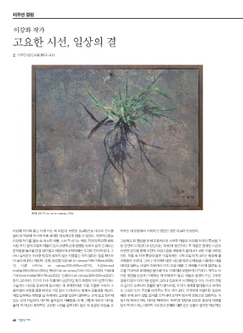 이강화 작가를 일상 속 사소한 사물, 스쳐 지나가는 석양, 자연의 미묘한 변화 그럼에도 본 컬럼을 위해 최종적으로 선택한 작품은 이강화 작가의 특성을 가