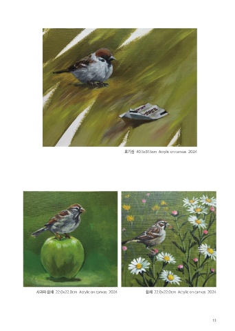호기심 40.5x31.5cm Acrylic on canvas 2024 사과와 참새 22.0x22.0cm Acrylic on canvas 2024 참새 22.0x22.0cm Acrylic on canvas 2024 13